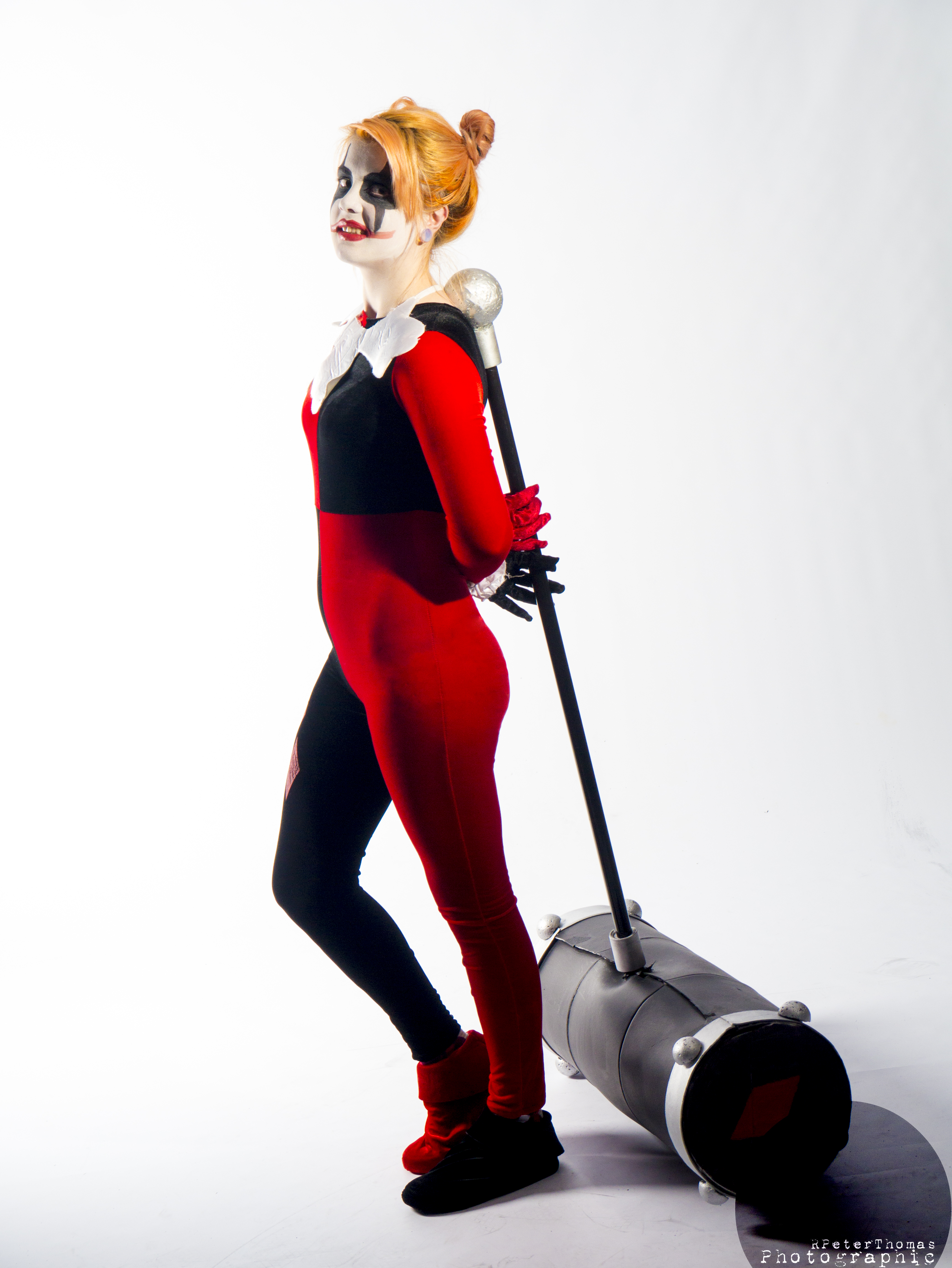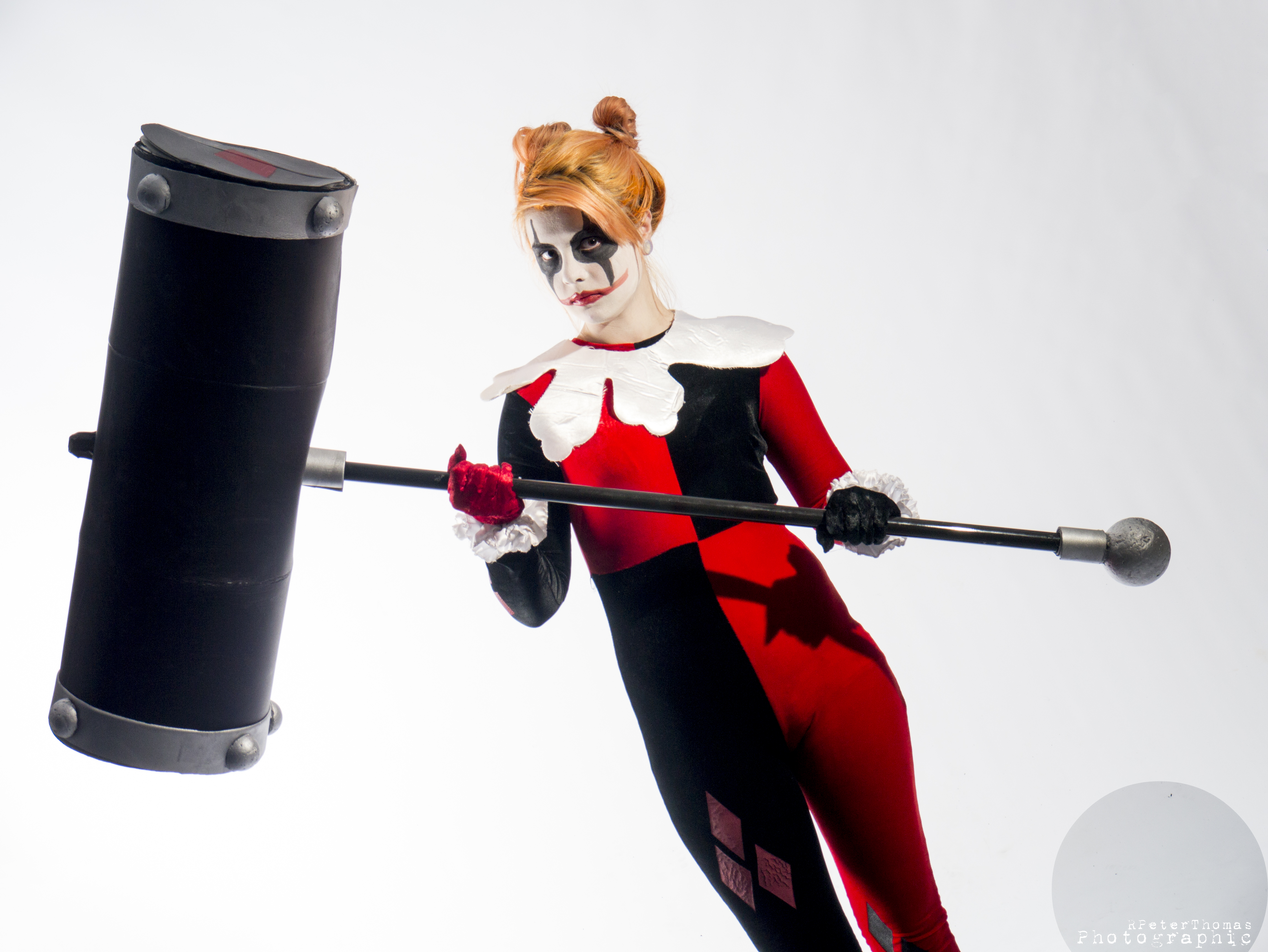 the makeup and costume were provided and styled by the model as it was a previous halloween costume. the props were my own except for the mallet. That was made by an A-level student at the college where the photoshoot took place.