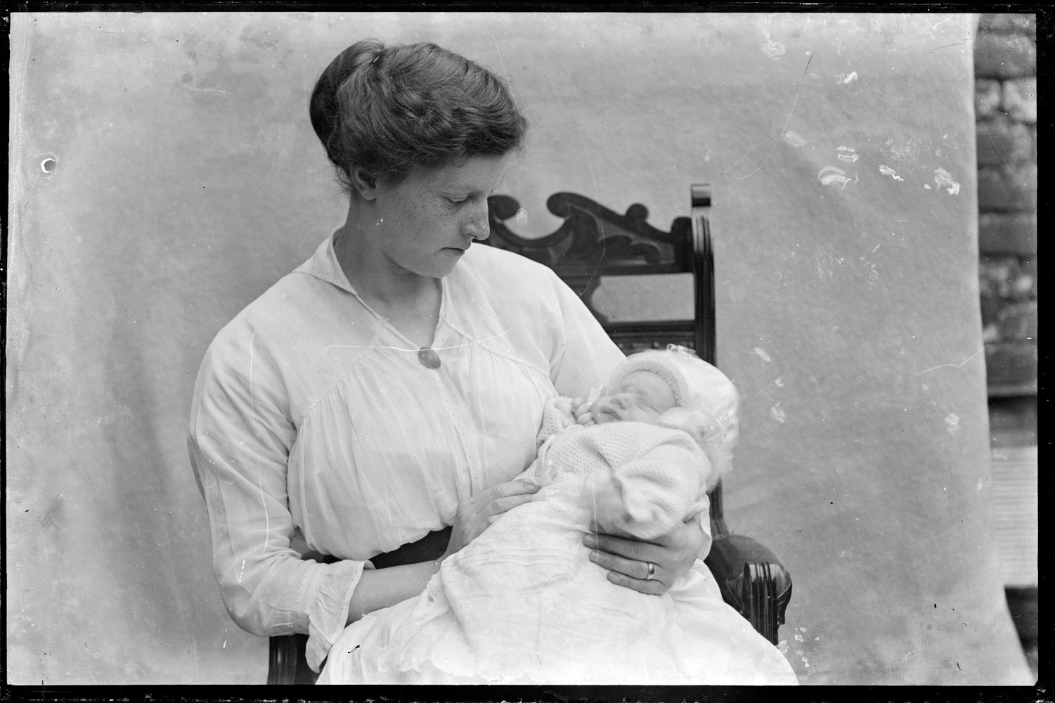 Woman and child with the childs eyes closed.
