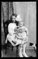 Glass negative. Young girl with baby on her lap.