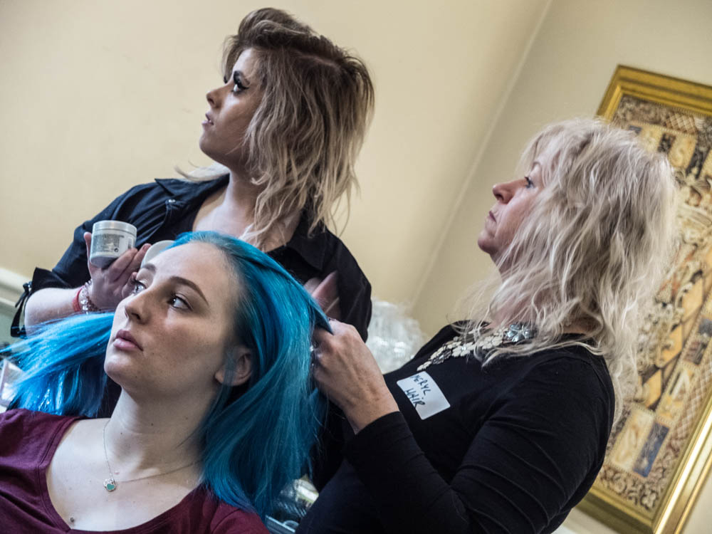 Backstage at NHF Wales, Hairdressing and Beauty awards, 2015.