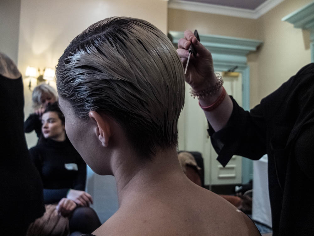 Backstage at NHF Wales, Hairdressing and Beauty awards, 2015.